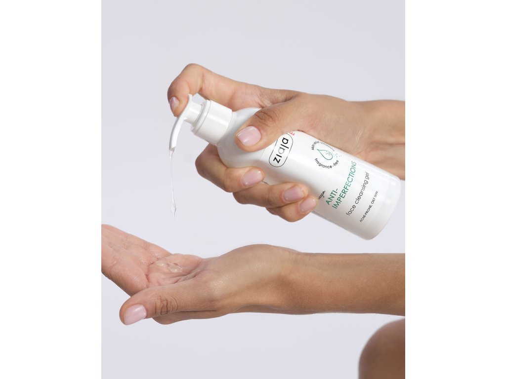 Aktivní mycí gel pro čištění aknózní pleti bez vonné kompozice.