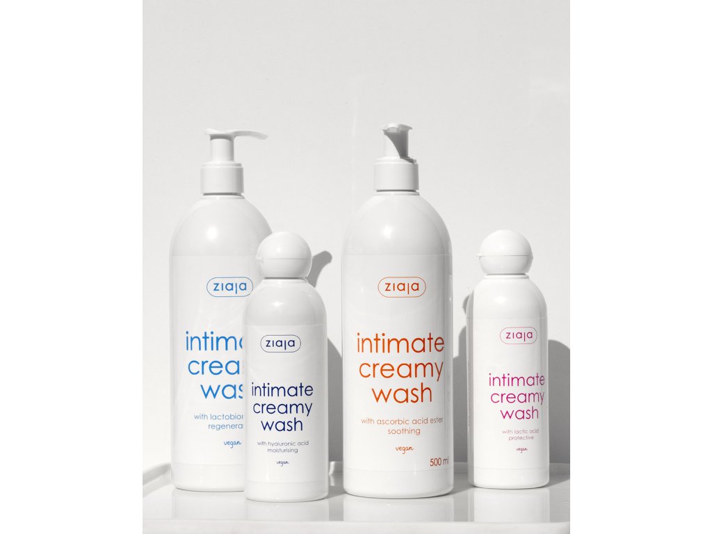 Krémová intimní hygiena s kyselinou hyaluronovou pro každodenní hygienu a hydrataci intimních míst. Kyselina hyaluronová je přirozená složka mukopolysacharidů. Vytváří přírodní film posilující hydro lipidovou bariéru pokožky. Aktivně zvlhčuje a zabraňuje trans epidermální ztrátě vody z pokožky. Krémová intimní hygiena intenzivně hydratuje a zabraňuje vysoušení pokožky. Obnovuje a udržuje fyziologické pH intimních míst. Jemně myje a poskytuje dlouhotrvající pocit čistoty a svěžesti. Učeno pro ženy všech věkových kategorií. Doporučeno jako pomocný přípravek pro zmírnění zánětu.