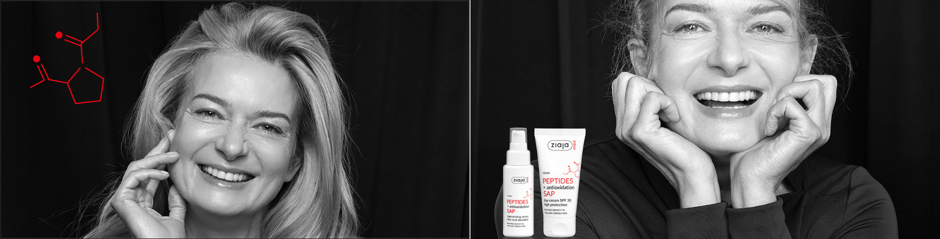 - peptidová kúra + antioxidace SAP má unikátní mechanismy, které vyrovnávají úbytek kolagenu v pokožce